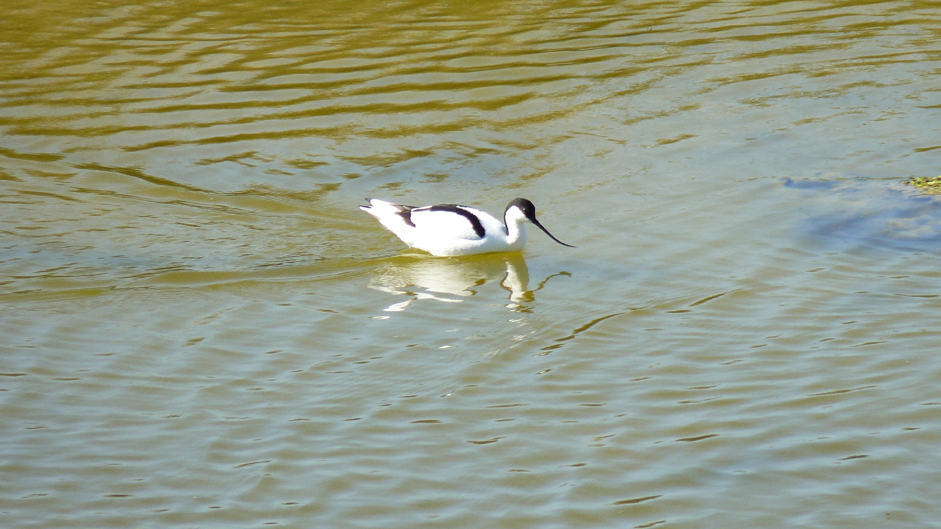 Vous ne manquerez pas de repérer l’avocette élégante à son bec recourbé vers le haut, bien adapté à sa façon de se nourrir.