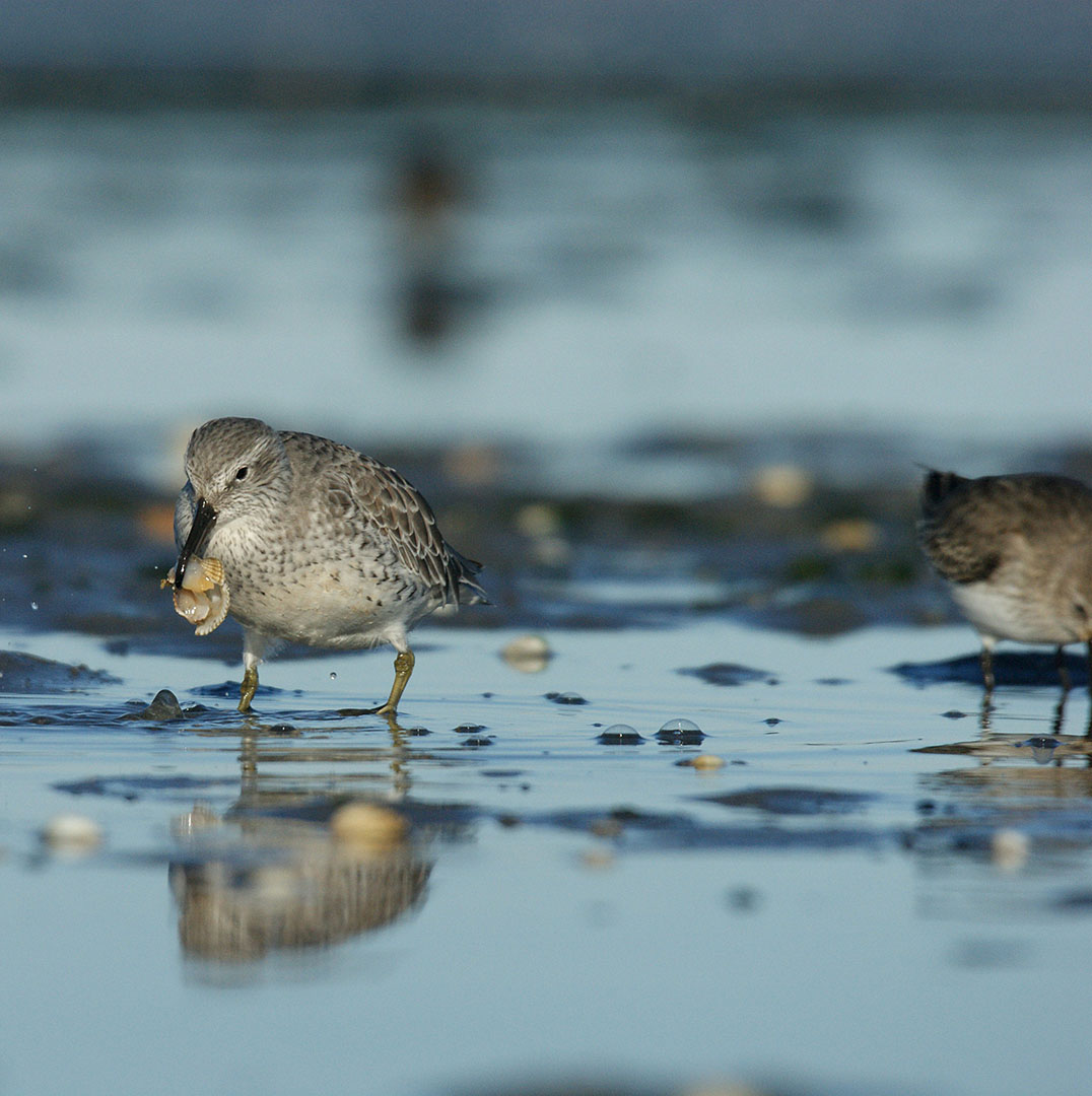 La très grande famille des limicoles, ces petits échassiers qui peuplent nos littoraux, compte deux groupes : les scolopacidés et les charadriidés. Les scolopacidés, dont font partie les combattants, chevaliers et autres bécasseaux, privilégient les capteurs tactiles de leurs becs pour repérer leurs proies. Les charadriidés utilisent davantage la vue, c’est sans doute pour cela que leurs yeux sont plus grands. Les dix espèces de scolopacidés présentes en Bretagne, les chevaliers guignette, aboyeur, arlequin, culblanc et gambette, les bécasseaux variable, violet, maubèche, et sanderling, et le combattant varié, sont toutes migratrices. Elles fréquentent le plus souvent nos régions pour l’hivernage, même si certaines peuvent y nicher.