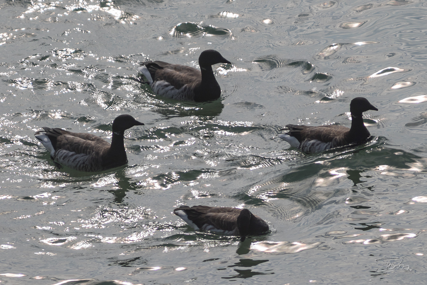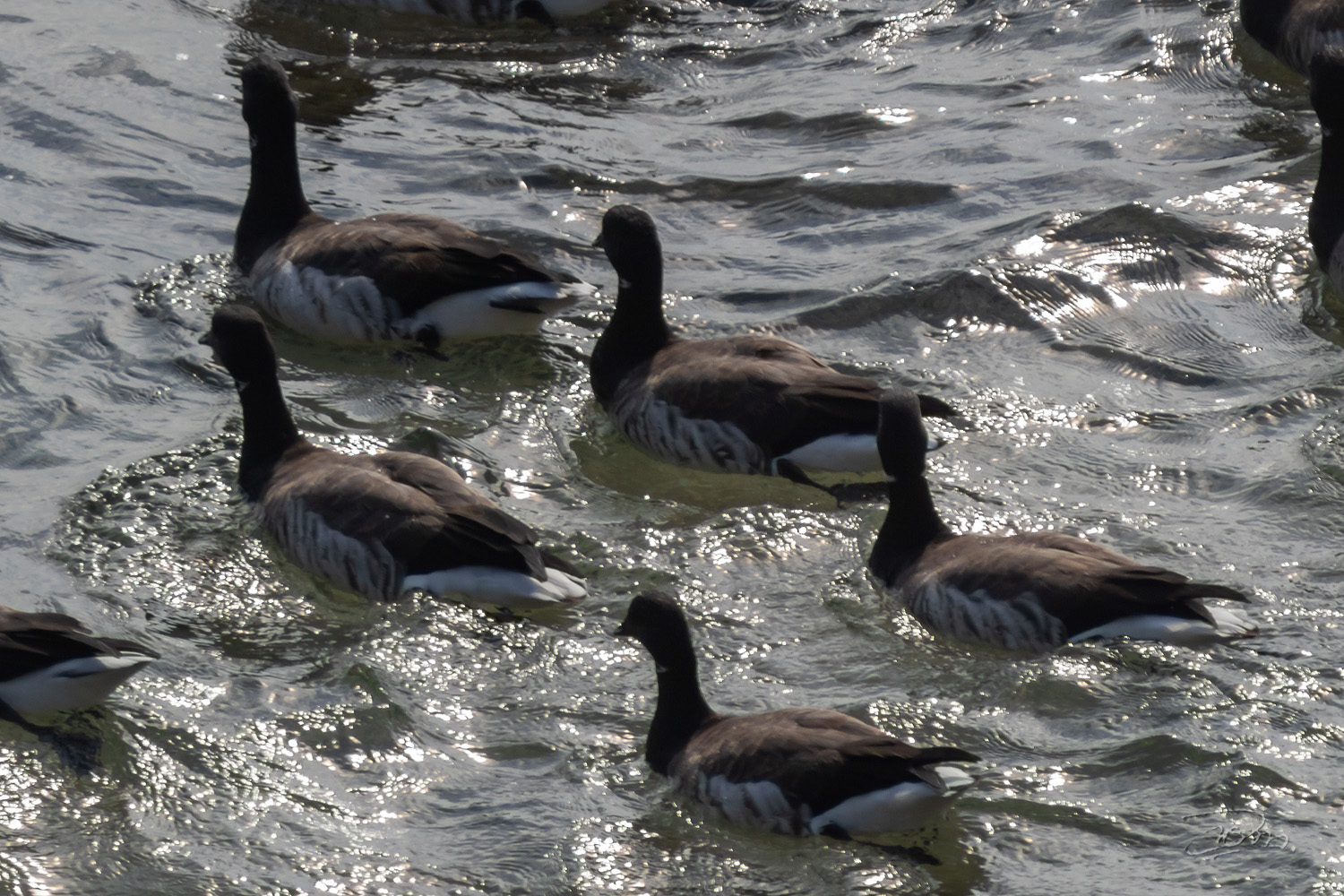 Les bernaches tirent leurs noms des bernacles, car la croyance populaire raconte qu’elles éclosent de ce crustacé qui vit attaché aux rochers… une légende parfaite pour une oie souvent marine, taillée pour la nage. Les bernaches comprennent plusieurs espèces dont deux affectionnent particulièrement nos littoraux Atlantique pour l’hivernage : la bernache cravant à ventre clair et la bernache cravant à ventre sombre. Comme toute oie qui se respecte, elles sont strictement phytophages et se nourrissent, en bord de mer, en broutant des plantes et des algues vertes et, en milieu terrestre, de l’herbe et des céréales.