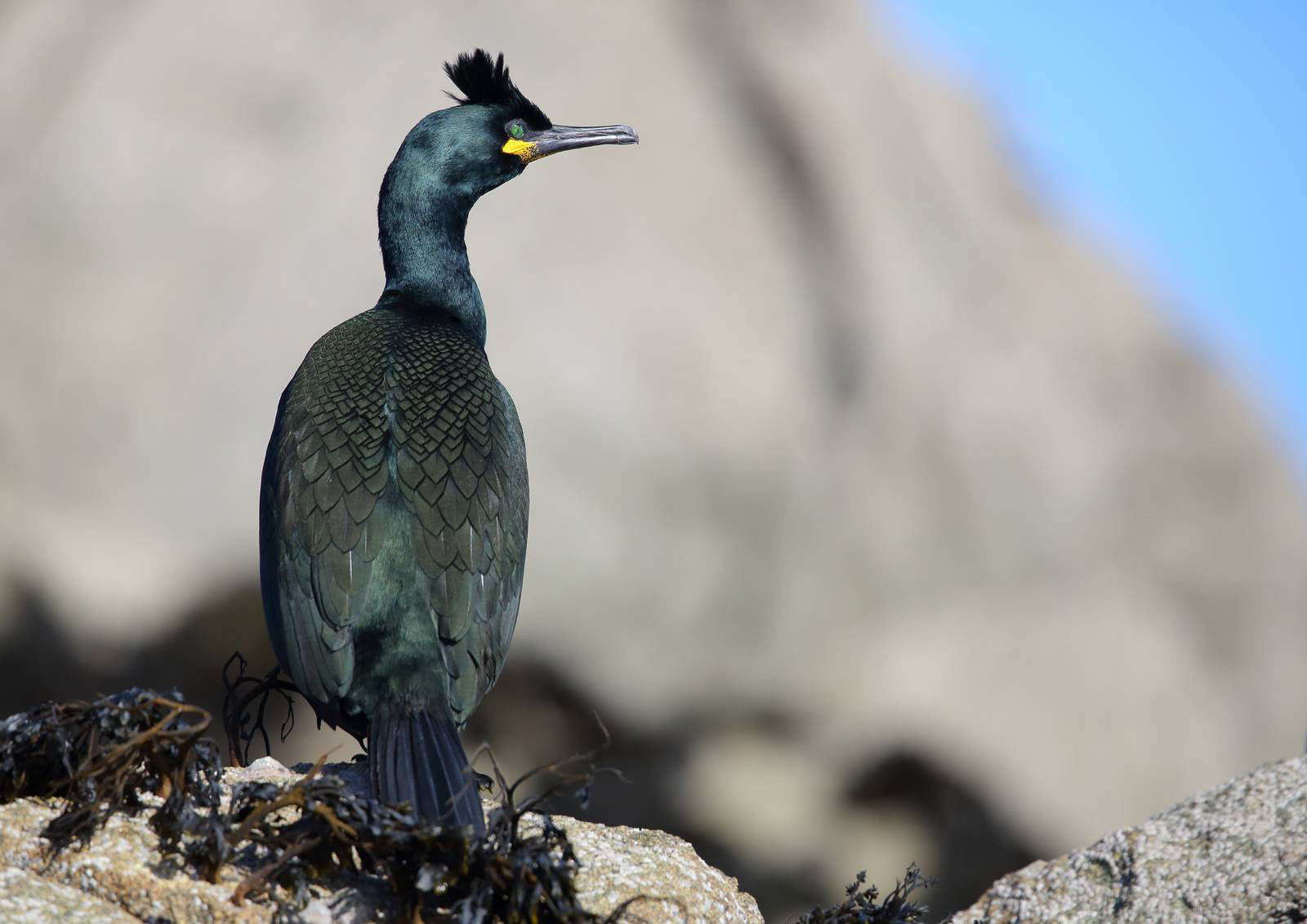Le cormoran huppé fréquente exclusivement les côtes rocheuses.