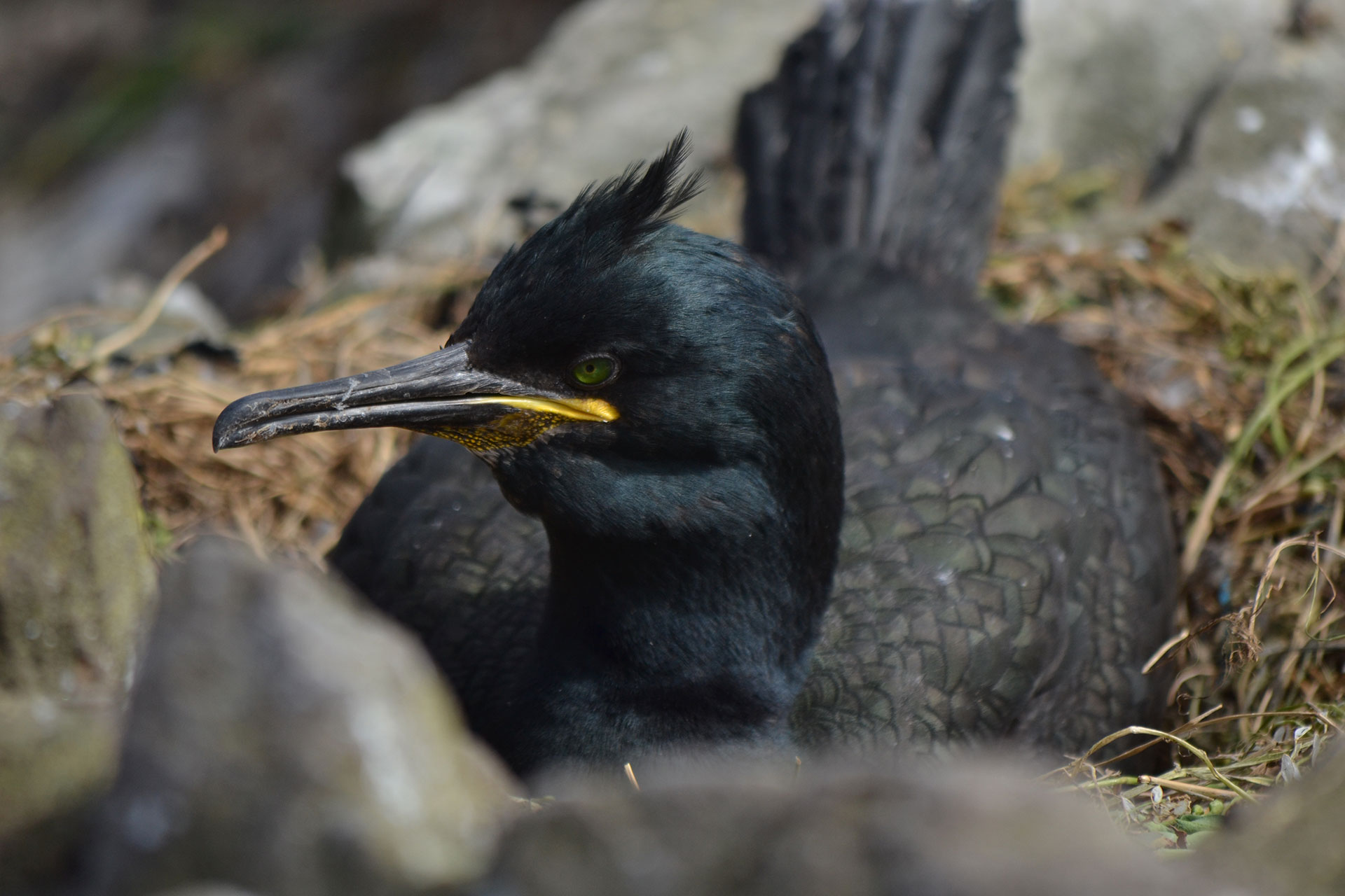 Grosse responsabilité sur nos côtes : le cormoran huppé, espèce rare au niveau mondial, concentre ses effectifs en Europe occidentale et notamment en France qui rassemble 14% de sa population. Son avenir est, en quelques sortes, entre nos mains… Pour construire son nid, il utilise fréquemment des macro-déchets, comme les plastiques, les fils ou les cordelettes, et témoigne ainsi de nos pollutions.