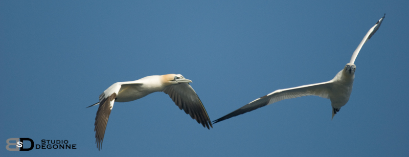 Le fou de Bassan est un géant : avec son envergure d’1,80 mètre et son corps qui peut atteindre 1 m, vous reconnaîtrez sa silhouette en vol entre toutes.