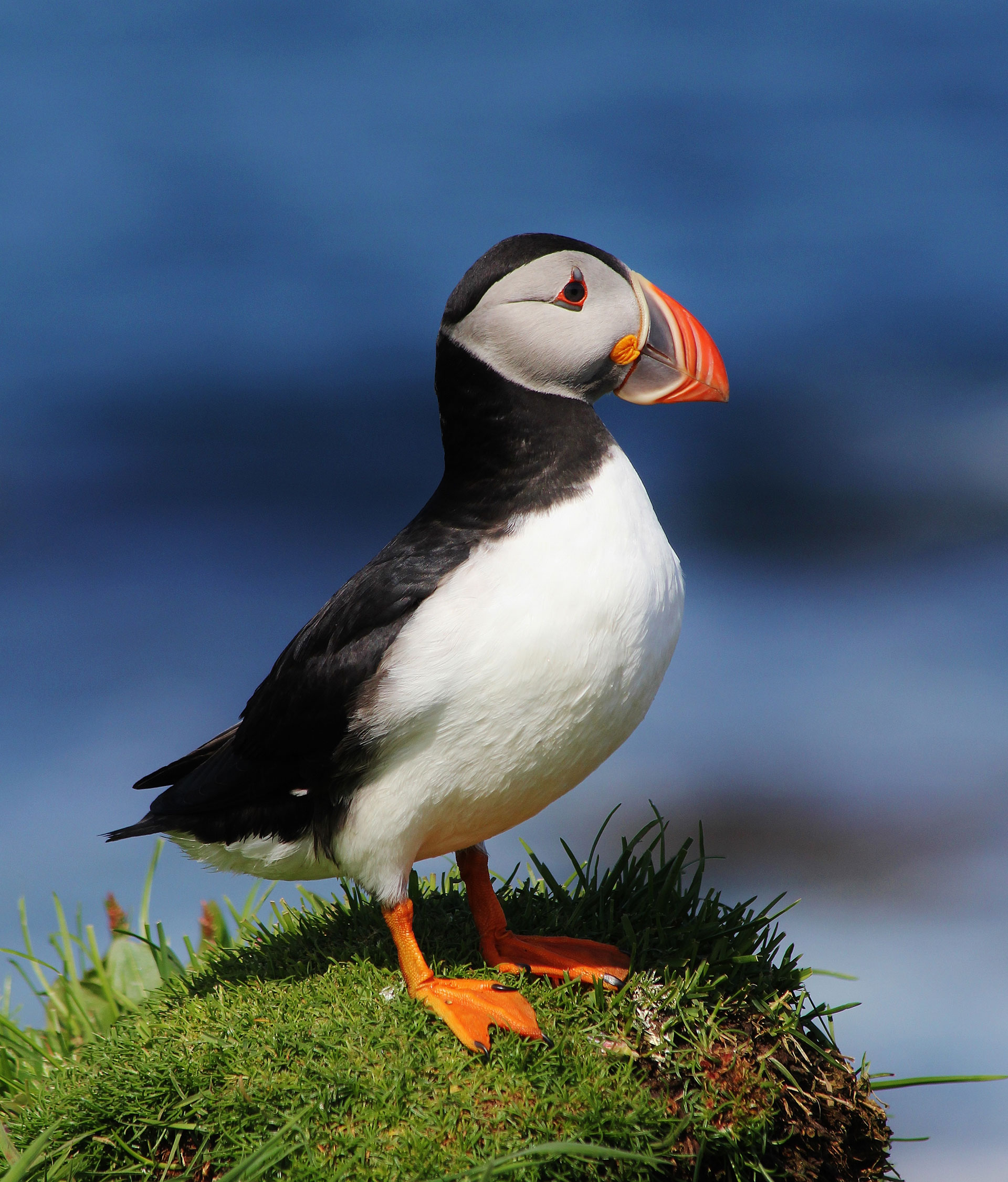Le macareux moine est un petit alcidé, c’est à dire qu’il appartient à la famille des pingouins même si, avec son bec massif, il ressemble à un perroquet des mers…
