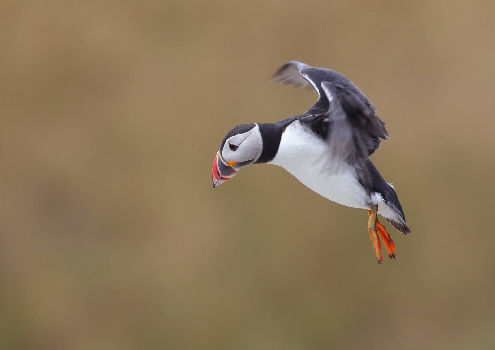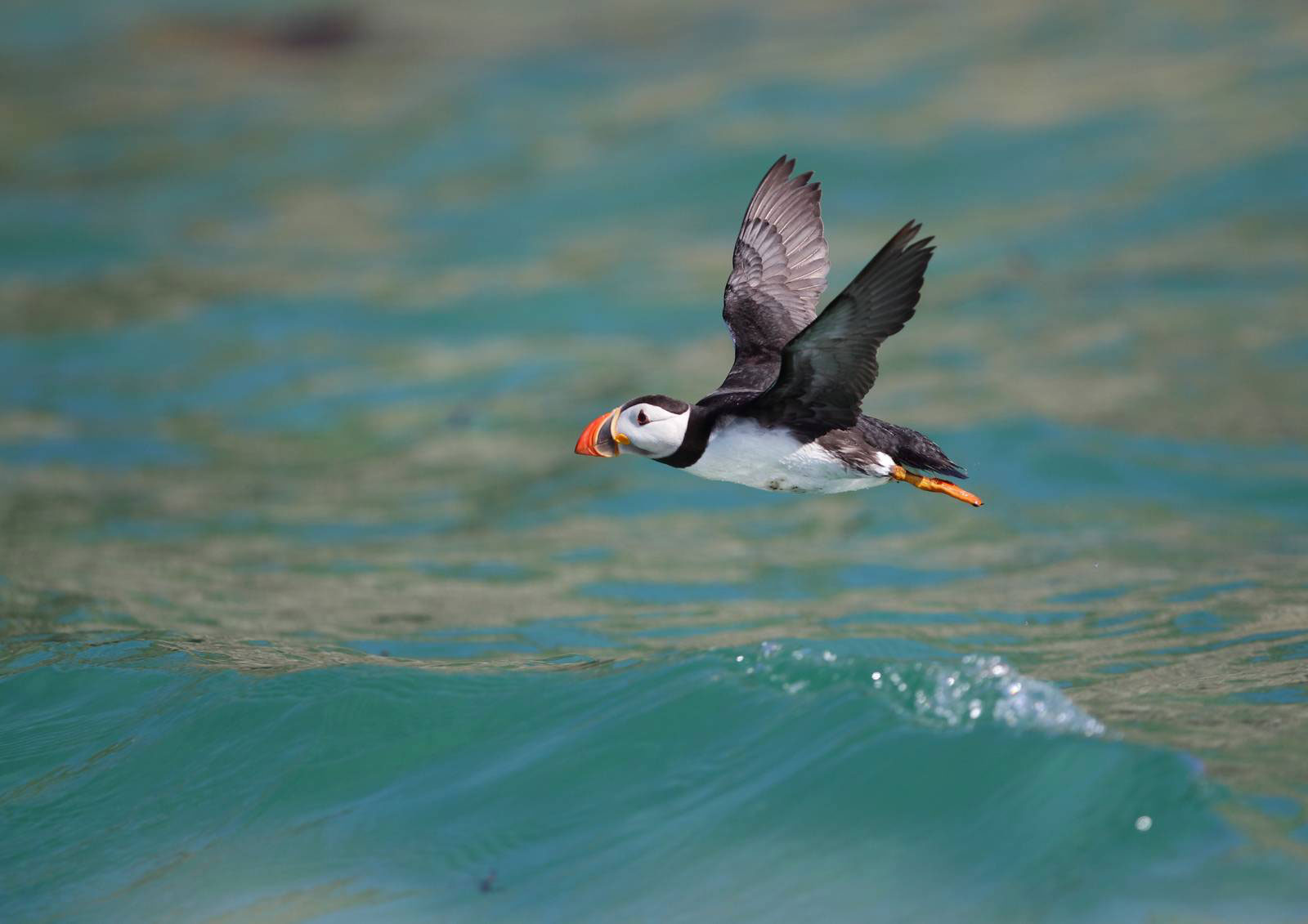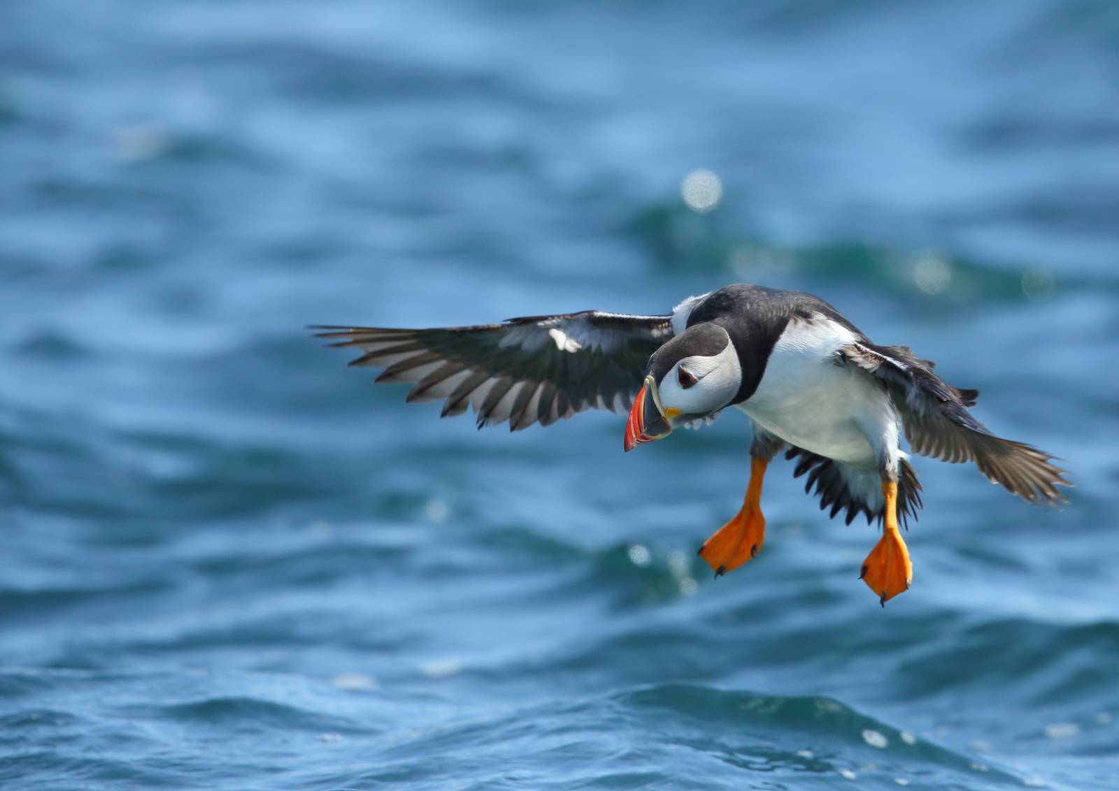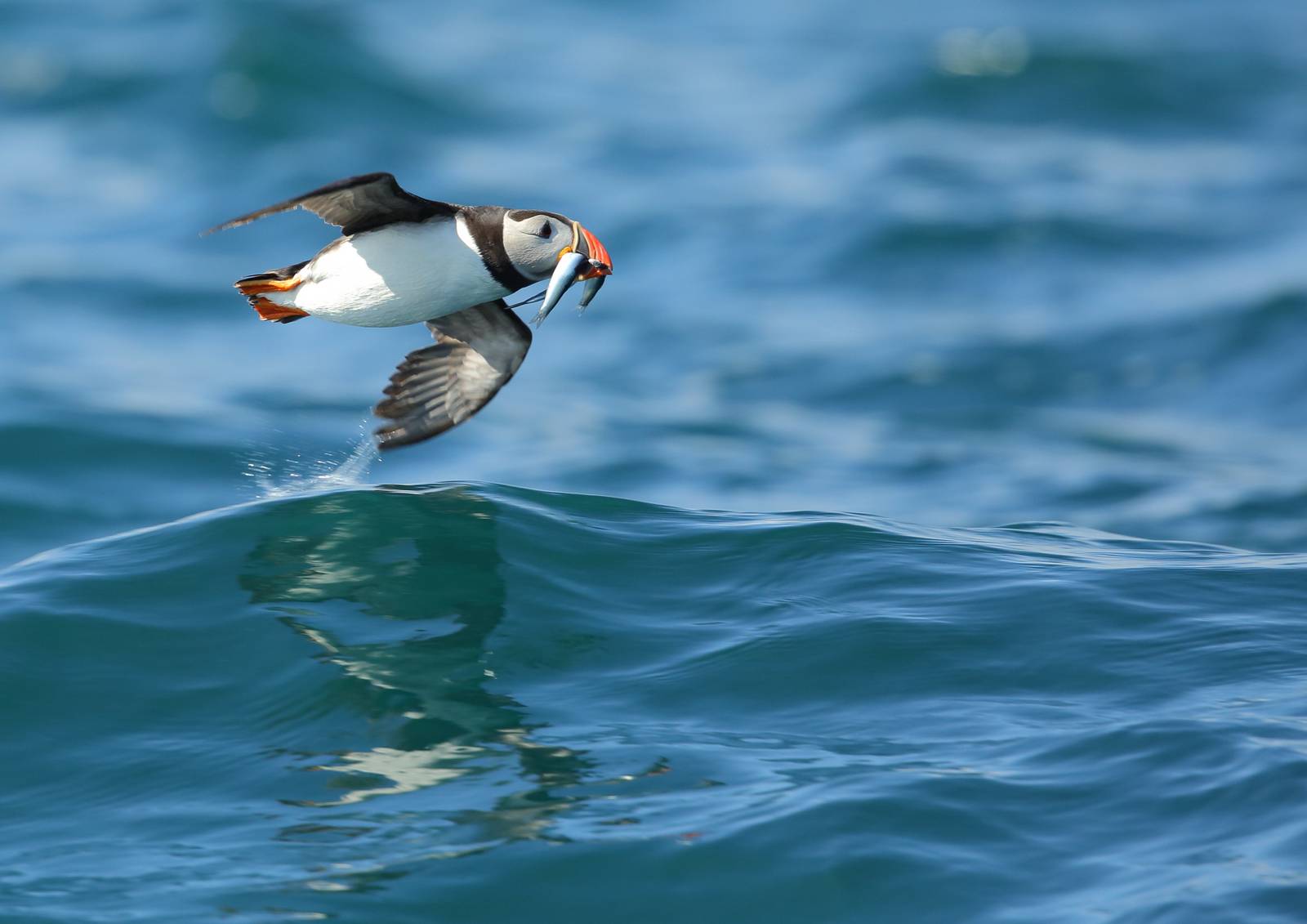 Seule espèce de macareux de l’Atlantique, le macareux moine, hors période de reproduction, passe son temps en haute mer, loin des côtes. Il est pourtant peu doué pour le vol avec ses ailes qui paraissent anormalement petites par rapport à la taille de son corps. Pour maintenir son altitude, il doit réaliser de trois à quatre cents battements par minute. Les atterrissages et décollages se font souvent en catastrophe… En revanche, il excelle à la nage.