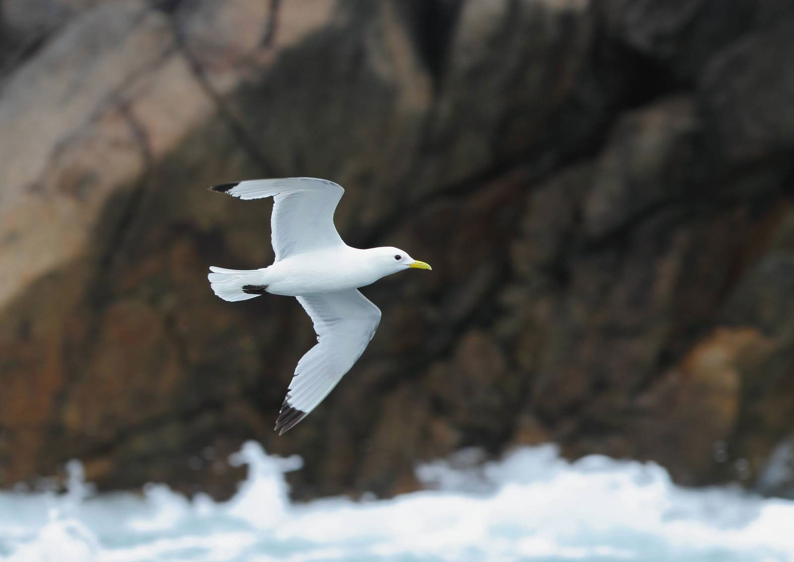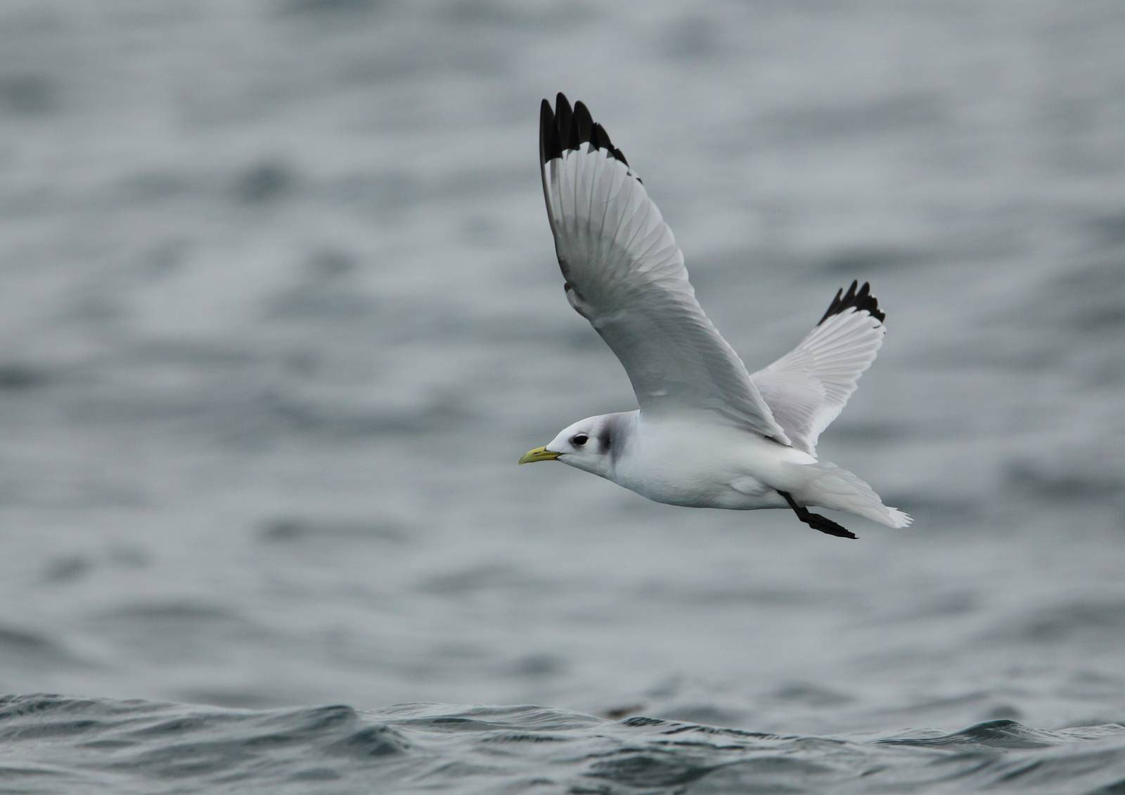 La mouette tridactyle est un petit laridé : un laridé n’est pas seulement une danse bretonne mais aussi un oiseau de la famille des goélands. La pointe des ailes paraît entièrement noire à distance, ce qui vous permettra de distinguer cette mouette des autres goélands de même taille.