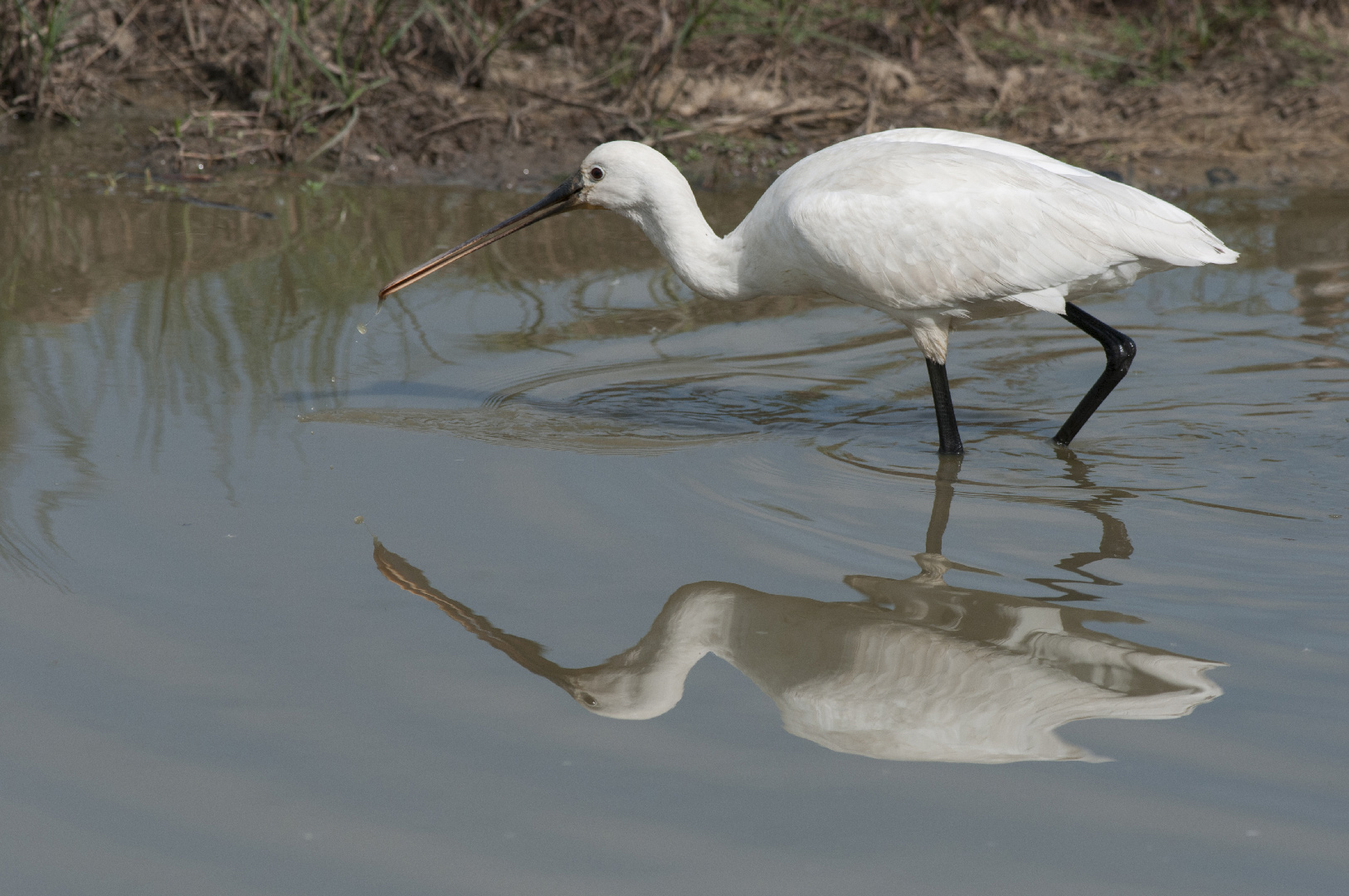 La spatule blanche est un grand échassier qui se déplace au sol d’une manière si particulière qu’on dit parfois qu’elle marche comme un homme… Elle est aussi identifiable grâce à son bec hautement spécialisé.