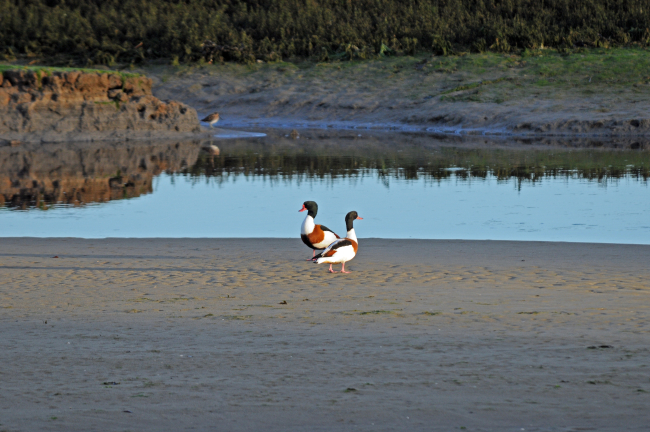 En Bretagne, les tadornes de belon adultes arrivent généralement sur les lieux de reproduction entre décembre et janvier. Les couples sont monogames et souvent fidèles d’une année sur l’autre. Ils installent leurs nids dans un trou d’arbre, de talus ou un terrier de lapin, voire sous des buissons ou dans des localisations encore plus insolites (anfractuosité de falaise, blockhaus ou cabanon en bois…)